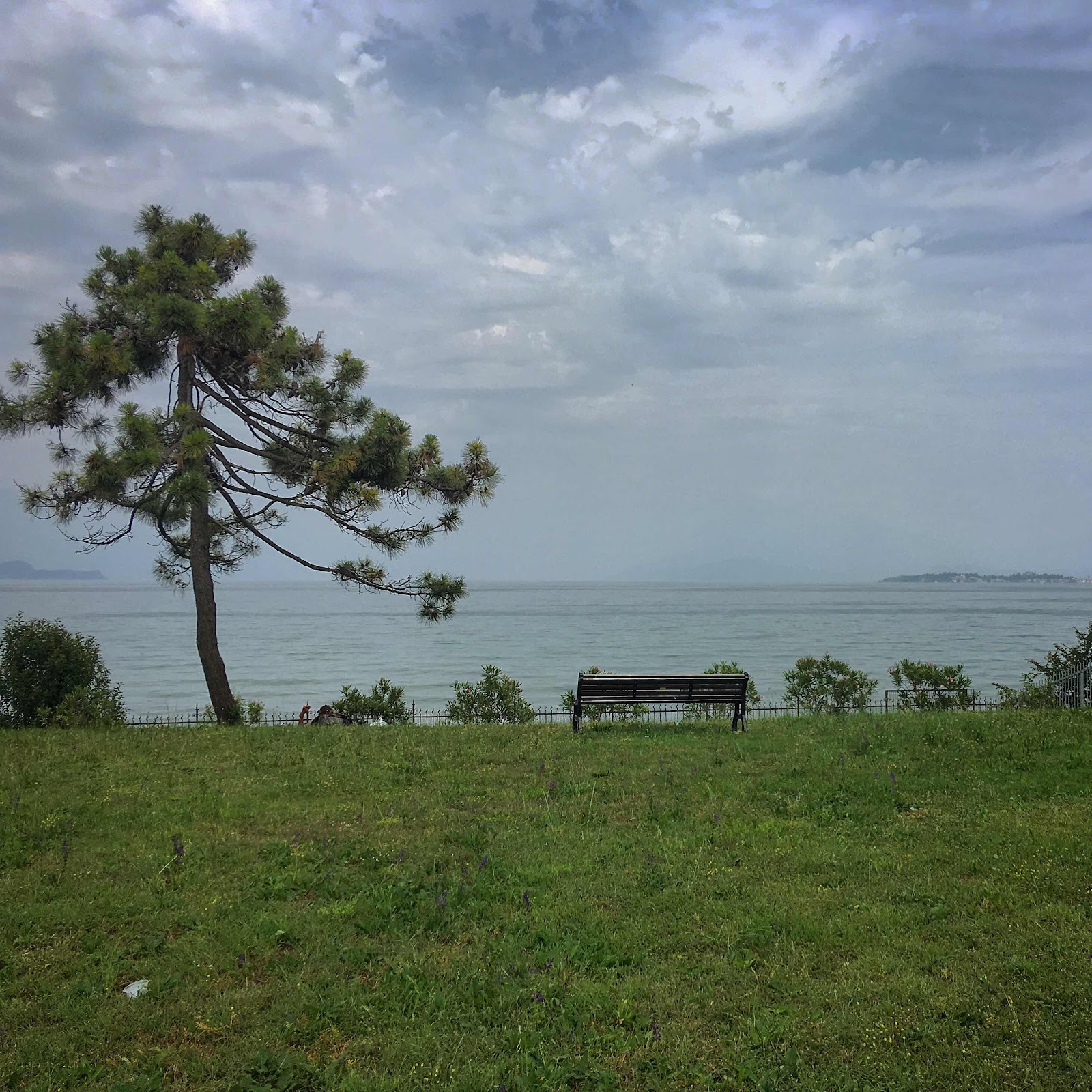 Nach dem Frühstück gingen wir im Manor Food im Ort einkaufen. Danach setzten wir unsere Fahrt Richtung Kroatien fort. Bald hatten wir die Grenze bei Chiasso passiert und zwängten uns durch die engen, italienischen Tunnels nahe der Grenze und weiter in Richtung Milano. Dank Google Maps erwischten wir die richtige Umfahrung; Richtung Bergamo und Verona. In Desenzano del Garda am Lago di Garda legten wir Mittagsrast ein. Rolf fand auf Anhieb einen passenden Parkplatz für unseren Bus - hinter zwei Lastwagen versteckt und nahe einer Kirche, dort hatten sicher alle Skrupel, den Bulli aufzubrechen... ;-)). Wir packten die Kühltasche und setzten uns an einen Campingtisch in den nahe gelegenen parco pubblico, fast direkt am See. Inzwischen hatten sich die Wolken grösstenteils verzogen und es war sehr schwülwarm geworden. So setzten wir bald darauf unsere Fahrt fort. An Verona, Padua und Venezia vorbei gings stehts weiter Richtung Osten. Schlussendlich landeten wir am frühen Abend auf dem Campeggio Obelisco nordöstlich des Stadtzentrums von Trieste. Auf dem schattigen, kleinen Platz, der uns ganz oben auf dem Hügel zugewiesen wurden, genossen wir ein „VW-Bus-Kühlschrank-kühles“ (sprich: eher lauwarmes als eiskaltes) mitgebrachtes Tessiner Belgian pale Ale Bier. Nach einem heissen Tag mit viel länger dauernden Fahrt als eigentlich vorgenommen genau das Richtige, um zu regenerien.