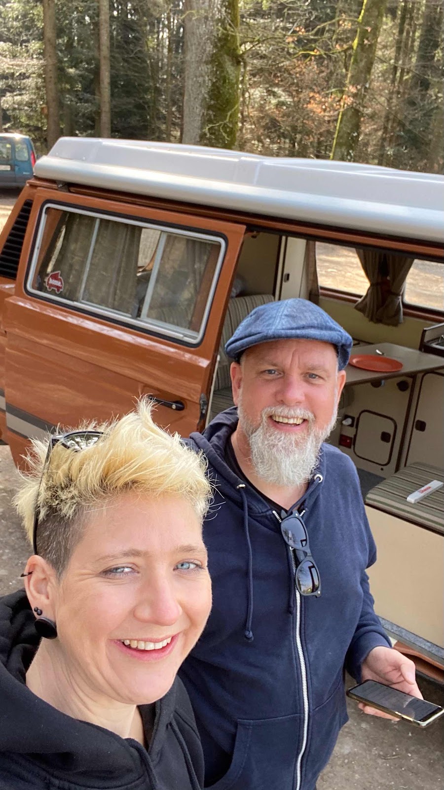 Etwas weniger idyllisch startete die Camping-Reise am Karfreitag. Zwar waren wir ausgeschlafen, doch bis dann alles zusammengepackt und im Bus verstaut war, verging doch so einiges an Zeit. Und das vor dem Frühstück! Unsere Launen hätten besser sein können, als wir all unser Zeugs im Bulli verstauten und uns fragten, weshalb wir nun erneut den gefühlt halben Hausrat und Essensvorrat mitschleppen wollten, wenn es doch nur um eine Übernachtung ging... Jänu, so sind wir halt einfach...
